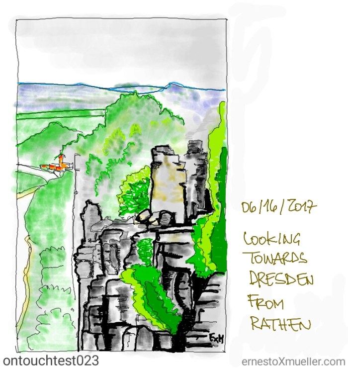 mountain view three 06/17/201708/04/2018 Ernesto X Mueller Digital sketch, free hand sketch, Mountains 06/17/2017 On a cloudy, warm day, above the river Elbe. At least, it didn’t rain.