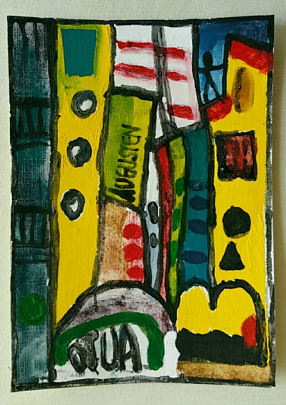 way out oo1 (postcard format) 04/29/201701/12/2018 Ernesto X Mueller free hand sketch, Munich, Real Paint 04/29/2017 Various pigments with egg, cheese & acryl on paper. way out oo1, 2017, ExM, 15×10